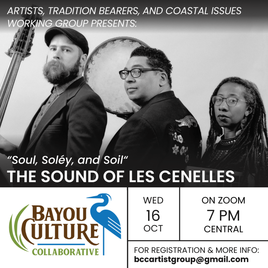 Soul, Soléy, and Soil: The Sound of Les Cenelles. Bayou Culture Collaborative. Presentation by Joseph B Darensbourg and Peter J Bowling. Wednesday, October 16, 2024, 7PM.